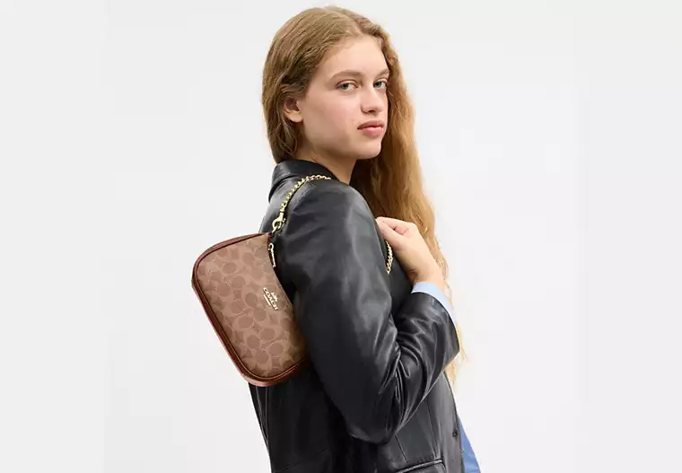 • Materiales: puede venir en canvas con el monograma clásico Coach o en cuero / combinaciones de materiales según versión.