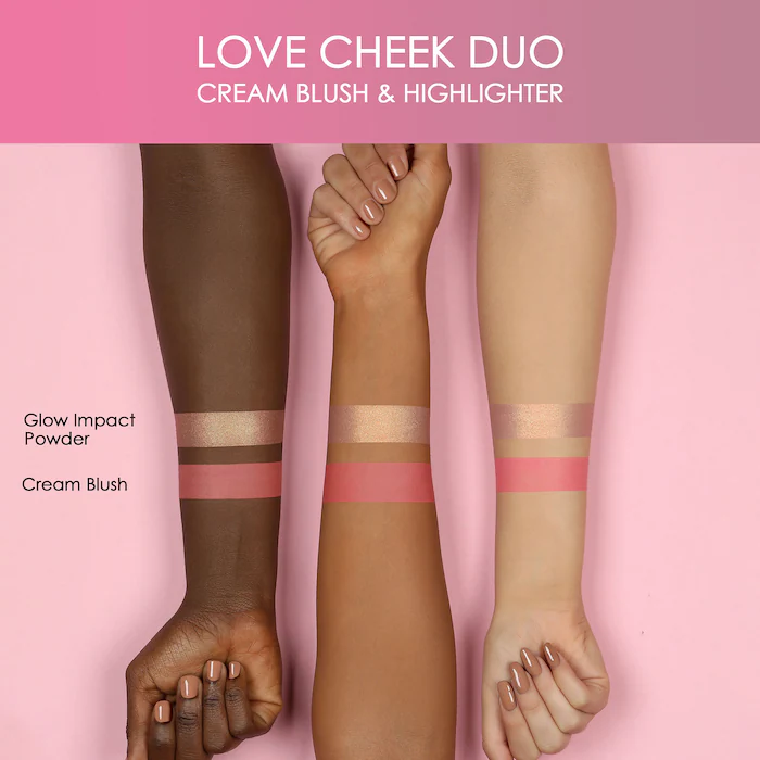 Love Cheek Duo es un dúo de colorete en crema y resaltador de la marca Natasha Denona. Incluye el rubor Darya y el polvo de impacto Impact Powder.